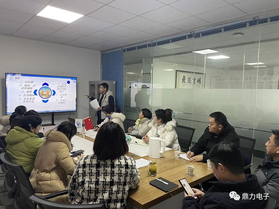 2021年12月24日,蚌埠鼎力電子科技有限公司邀請安徽大友昱達律師事務(wù)所楊寶根律師、許曉冬律師,為公司管理層進行勞動用工管控風(fēng)險防范知識培訓(xùn)。
